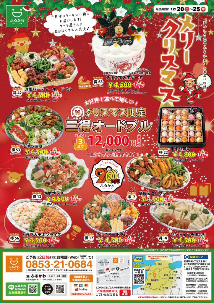 クリスマスは12/23~25限定の商品になっております。クリスマス限定オードブル、クリスマスケーキをご用意いたしました!
